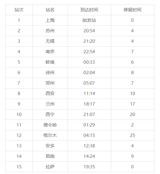 問:西寧市到拉薩Z165途經各地及運行時間表?