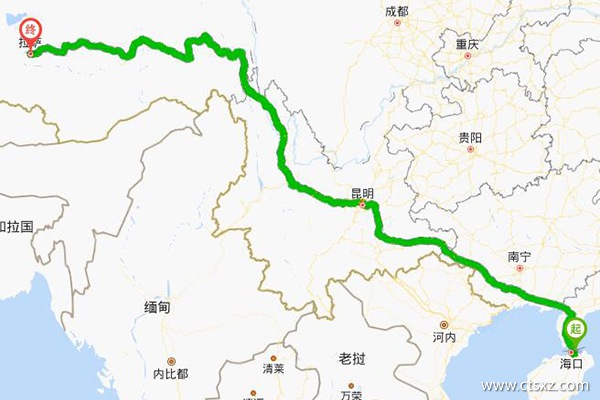 圖:海南到拉薩自駕路線